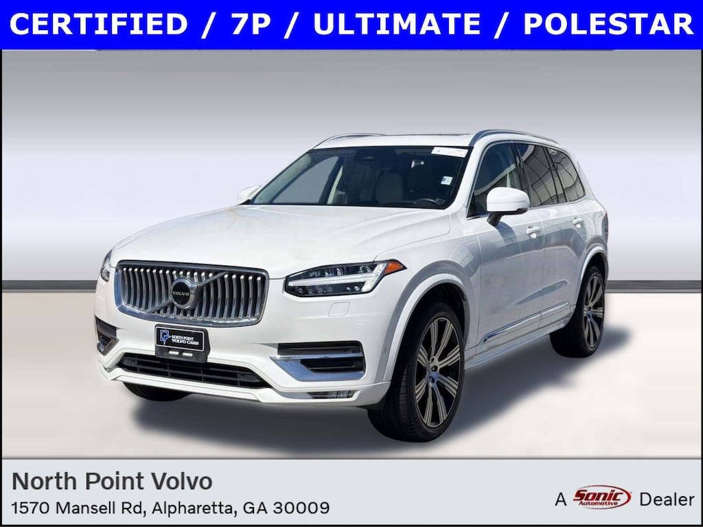 Certified by Volvo 2023 Volvo XC90 B6 AWD Ultimate 7 Passenger in Crystal White Pearl Metallic with Blond Nappa Leather interior. Additionally equipped with Polestar Performance Software.Original in service date - August 24th, 2023